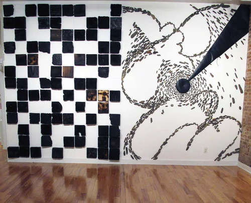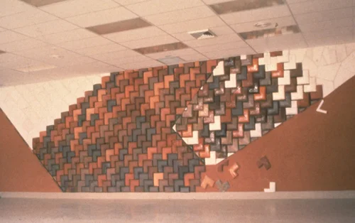 Wood, ceramic and rubber. 9ft x 18ft x2" in relief.